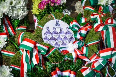 Az aradi vértanúk emléke előtt tisztelegtek a megemlékezők Batthyány Lajos szobránál az október 6-i városi megemlékezésen. Fotó: M. Tihanyi Stella // Gyöngyösi Kulturális Nonprofit Kft.