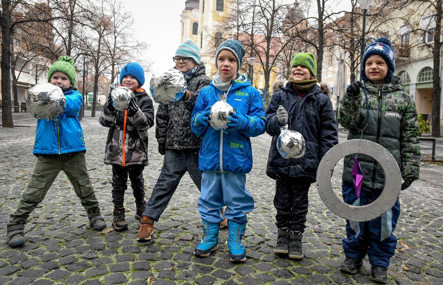 Feldíszítették mindenki karácsonyfáját a Fő téren. A húszméteres duglászfenyőt a katasztrófavédelem, a városi diáktanács és a város óvodásainak közreműködésével öltöztették lila, rózsaszín és ezüst díszekbe. Fotó: M. Tihanyi Stella.