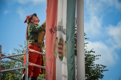 A 102 évvel ezelőtt elfogadott trianoni békediktátum aláírására emlékeztek Gyöngyösön a 2018-ban felavatott Országzászló emlékműnél. Fotó: Czímer Tamás