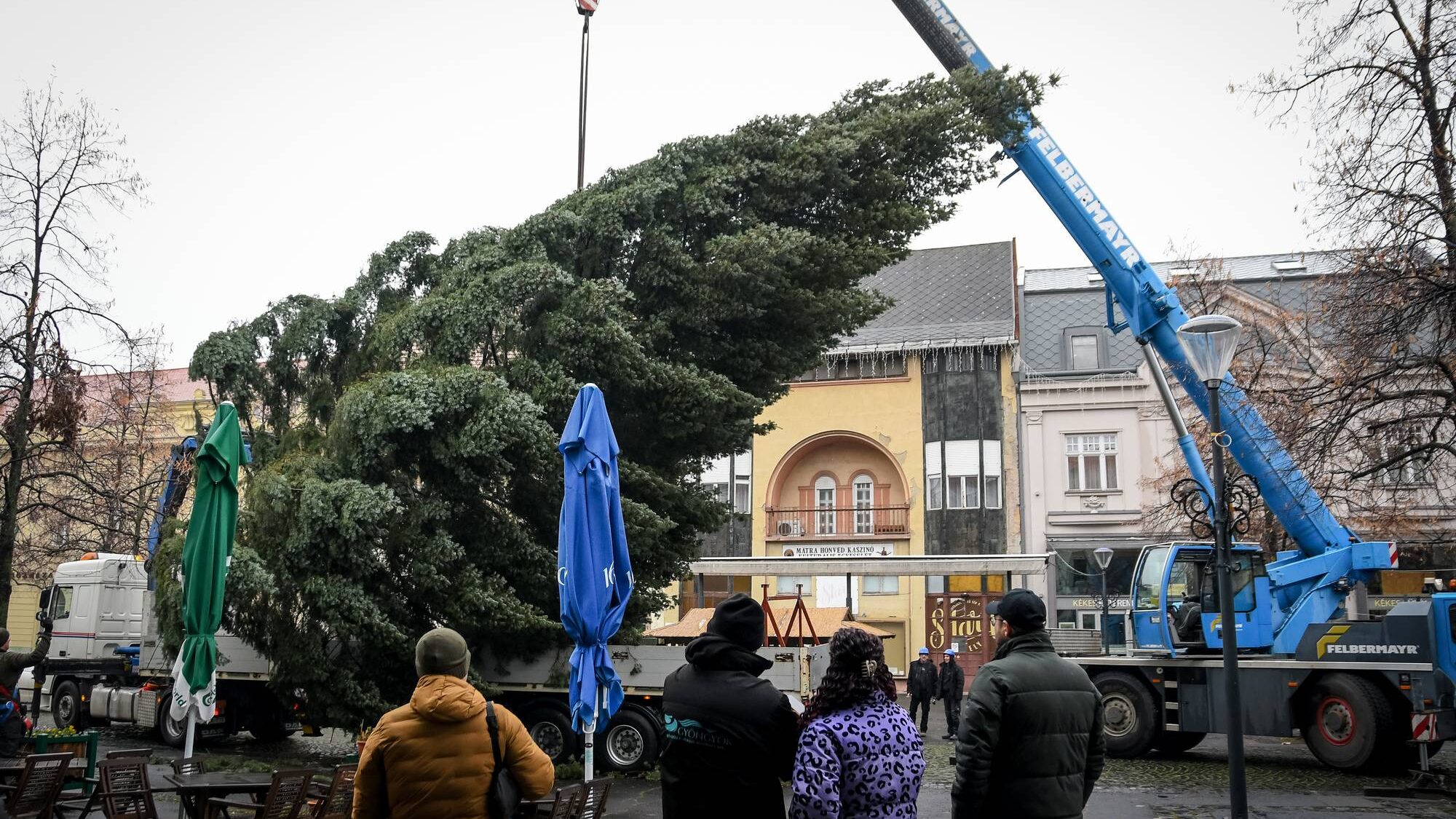 Megérkezett a Fő térre a város karácsonyfája