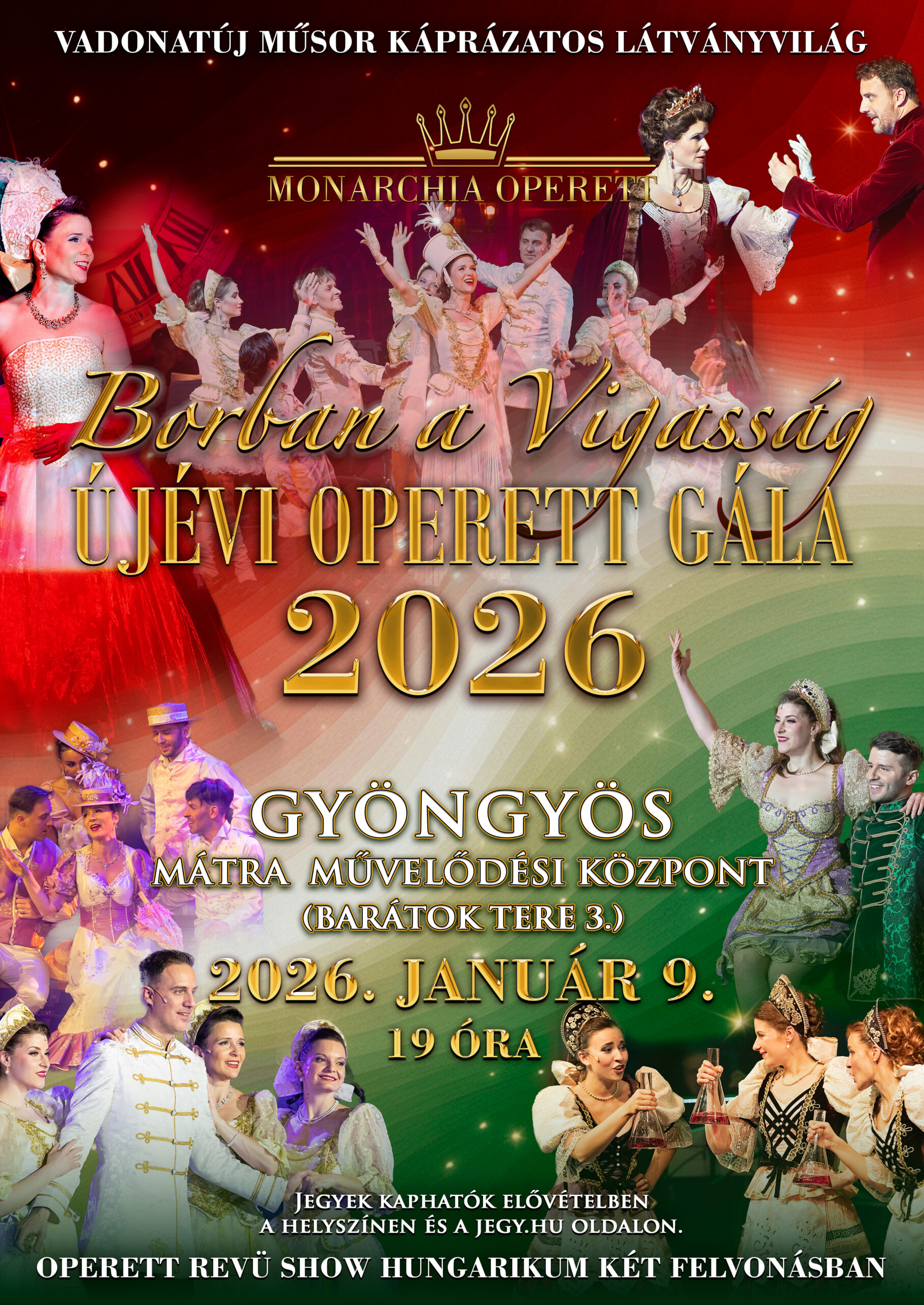A Monarchia Operett különleges, egész estés gálaesttel tiszteleg kiemelkedő hungarikumaink, nemzeti kincseink előtt: a magyar borkultúra és a klasszikus operett örökérvényű hagyományai előtt. A „Borban a Vigasság” – Operett Gála nem csupán lenyűgöző zenei élményt nyújt, hanem kulturális utazásra is hív: a nézők a magyar bor, mint hungarikum gazdag világát és a színpadi muzsika felejthetetlen dallamait élvezhetik, miközben a bor és az operett közös ünnepe varázsolja el az egész estét.