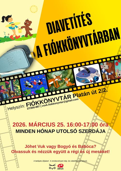 Fiókkönyvtár: Minden hónap utolsó szerdáján 16 és 17 óra között diavetítés