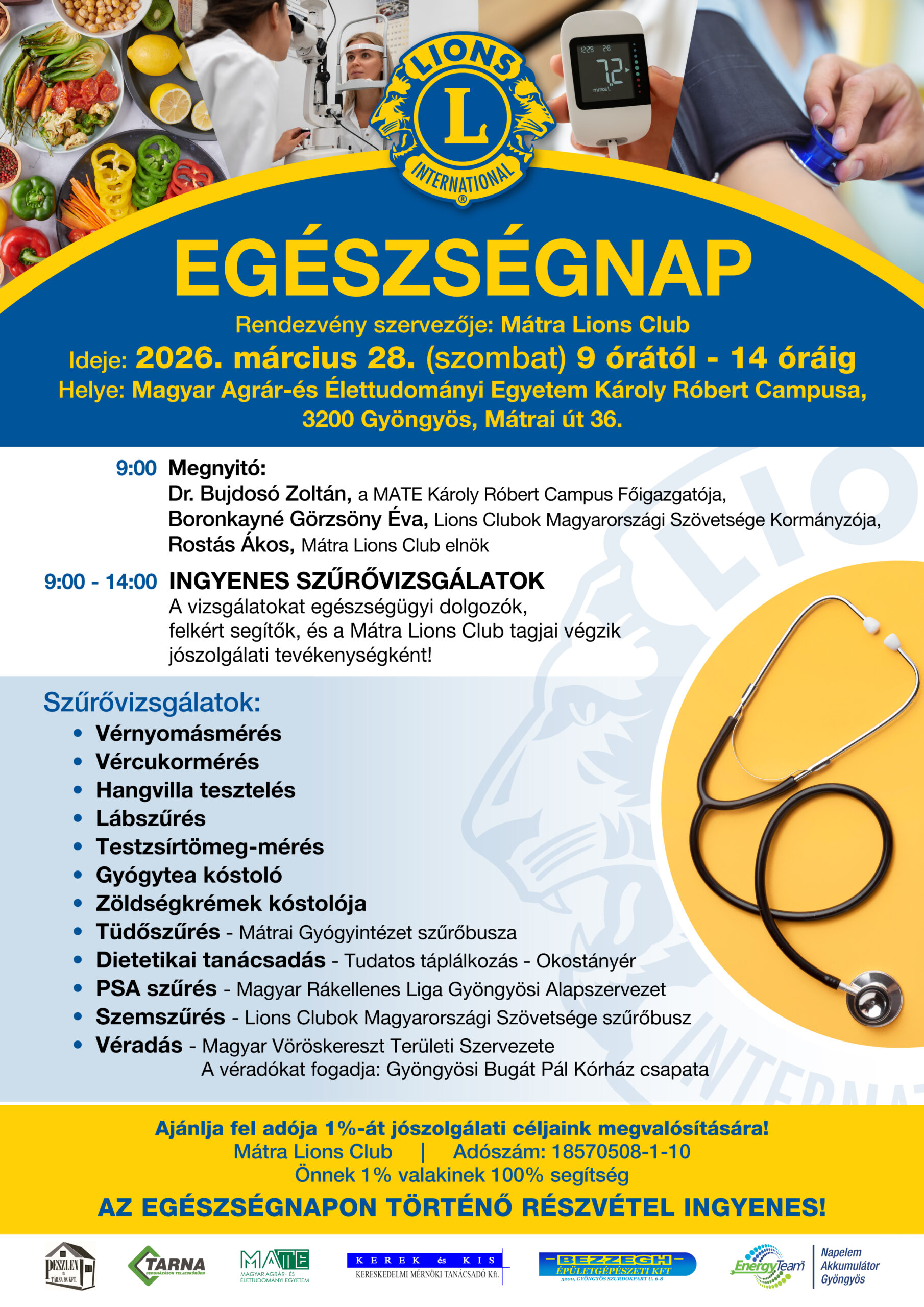 A gyöngyösi Mátra Lions Club az idén is megszervezi tavaszi egészségnapját!