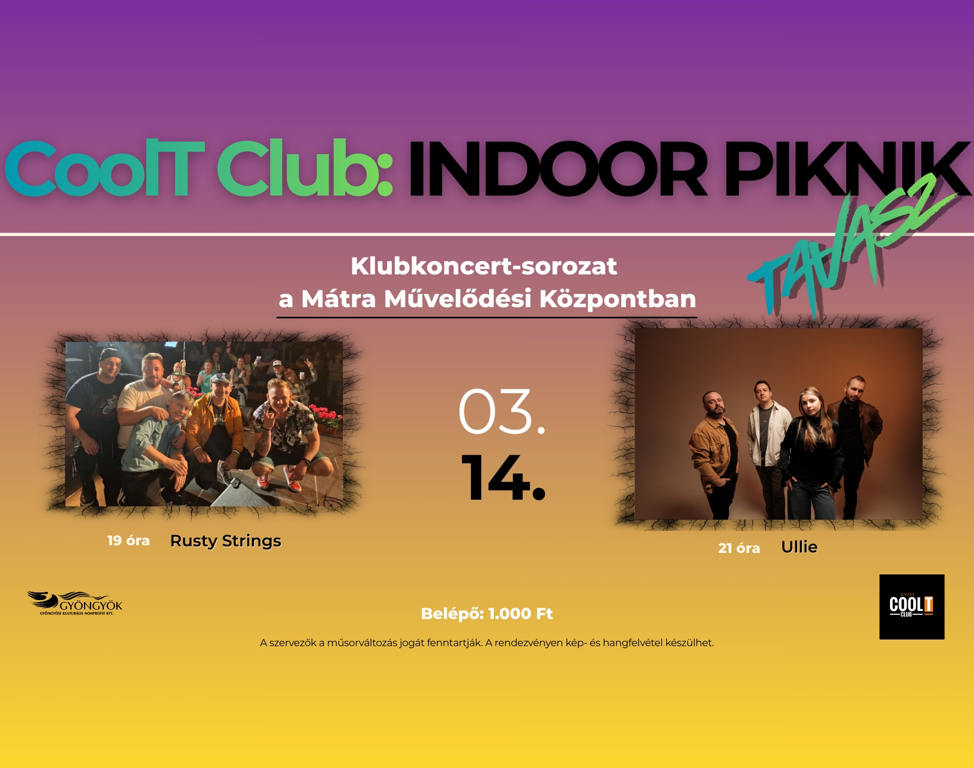 lebonyolításban – kéthetente szombaton – 10 estén keresztül két-két koncertet élvezhetnek a zenerajongók CoolT Club: INDOOR PIKNIK elnevezésű új rendezvénysorozatunkon!