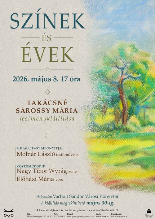 Takácsné Sárossy Mária festménykiállítása, amely megtekinthető május 30-ig a Vachott Sándor Városi Könyvtárban.