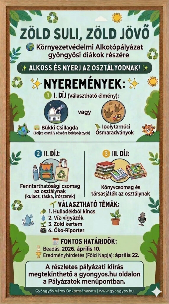 Önkormányzata Környezetvédelmi Alap terhére nyilvános pályázatot hirdet gyöngyösi általános iskolás tanulók részére.